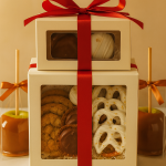 A beautifully curated, self-serve kiosk stocked with gourmet sweets, caramel apples, dipped treats, and seasonal gifts.