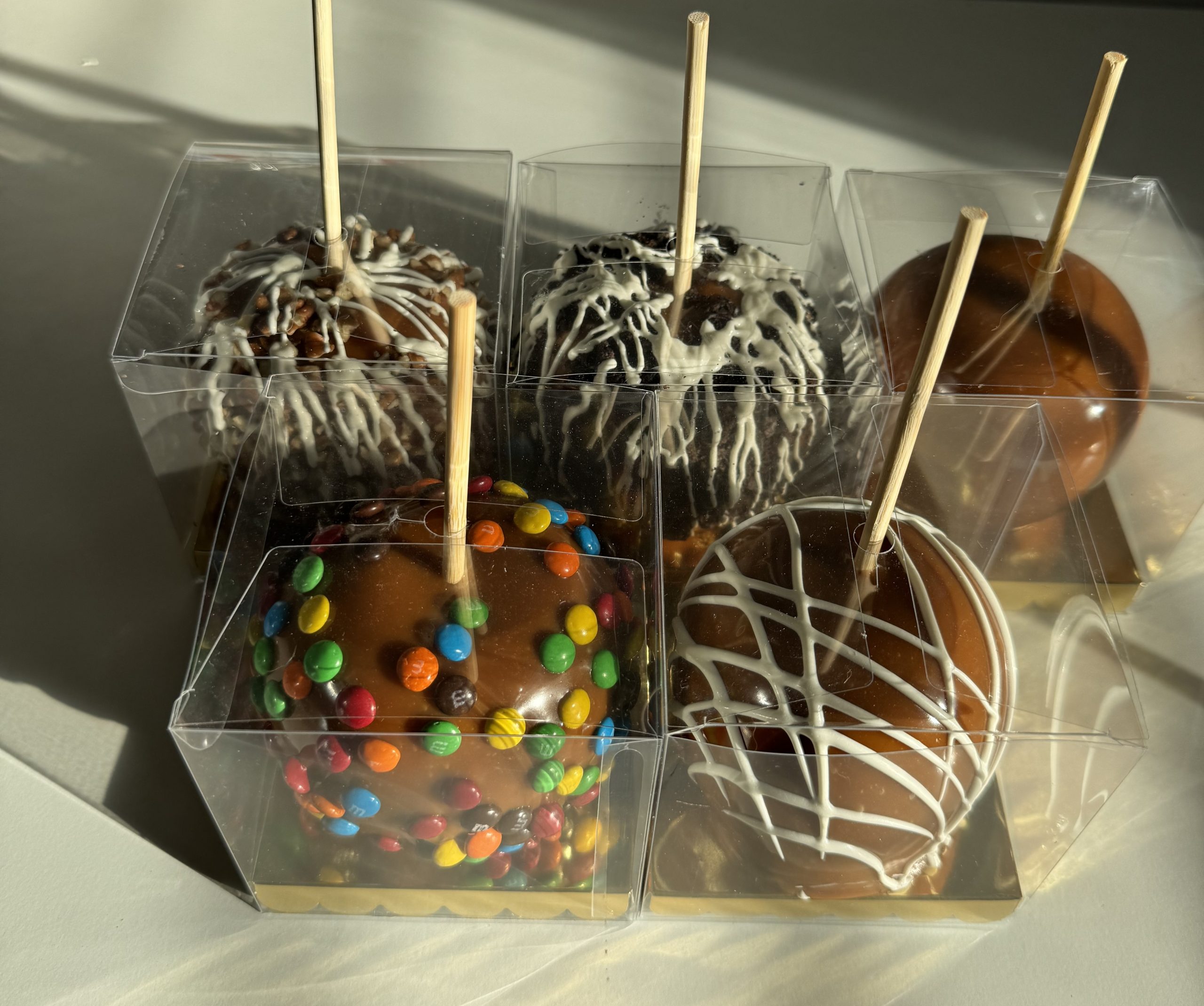 A timeless favorite made fresh and indulgent. We start with crisp, juicy granny smith apples and dip them in smooth, buttery caramel. Choose from five irresistible varieties: plain caramel for a classic touch, caramel with a drizzle of chocolate, Oreo crumble with white chocolate drizzle for a cookies-and-cream twist, pecan crunch finished with a drizzle of chocolate or mini M&Ms. Each apple is prepared in small batches, making it as special as it is delicious. Perfect for gifting, sharing, or treating yourself to something nostalgic yet elevated.